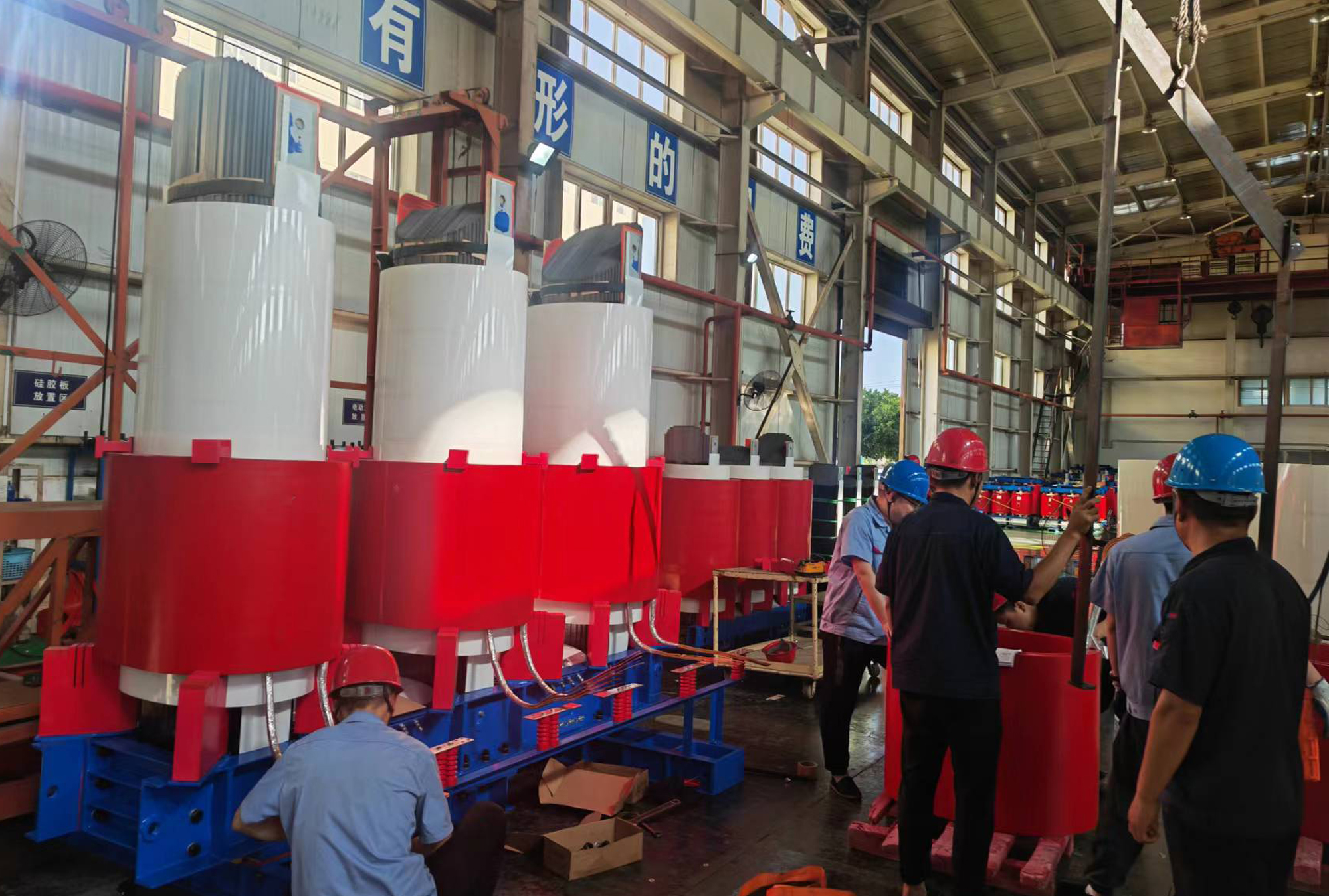 面对时间紧、任务重、难度高,又遇五十年不遇的高温酷暑天气,新环干变全体员工秉承“始于客户需求,终于客户满意”的经营服务理念,践行陕西电子的“敢于挑战,立信心;攻坚克难,求创新”的“敢?超”企业文化精神,上下一心,迎难而上,设计部门加班加点,保障产品整体性能,利用三维工具验证产品结构;采购部门克服国内新冠疫情各地散发可能导致原材料供应不及时情况和材料价格上涨的因素,保障供应;生产系统有序组织生产,按期交付。最终,产品一次性通过交接试验,顺利投运,圆满完成了客户重托,得到了客户好评。交付的8500kVA干式特种整流变压器空载损耗优于客户要求和原变压器,一年节约电费超过十万元。